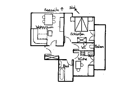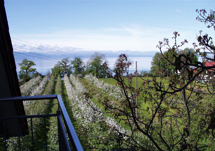 Diese Zwei-Zimmer-Wohnung befindet sich im 2. Stock unseres älteren Hauses und verfügt durch die lange Fensterreihe über einen einmaligen Panoramablick über den See und die Schweizer Berge. Gemütlicher Wohnraum mit Sofaecke, Essecke, TV und Ausziehcouch für 2 Personen.